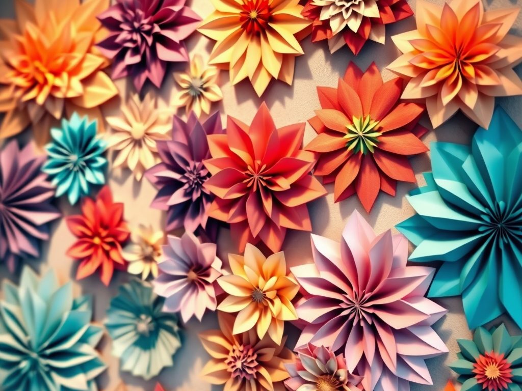 • Origami: składanie papieru w określone wzory, aby uzyskać kształt kwiatów, takich jak tulipany czy róże, bez użycia kleju.